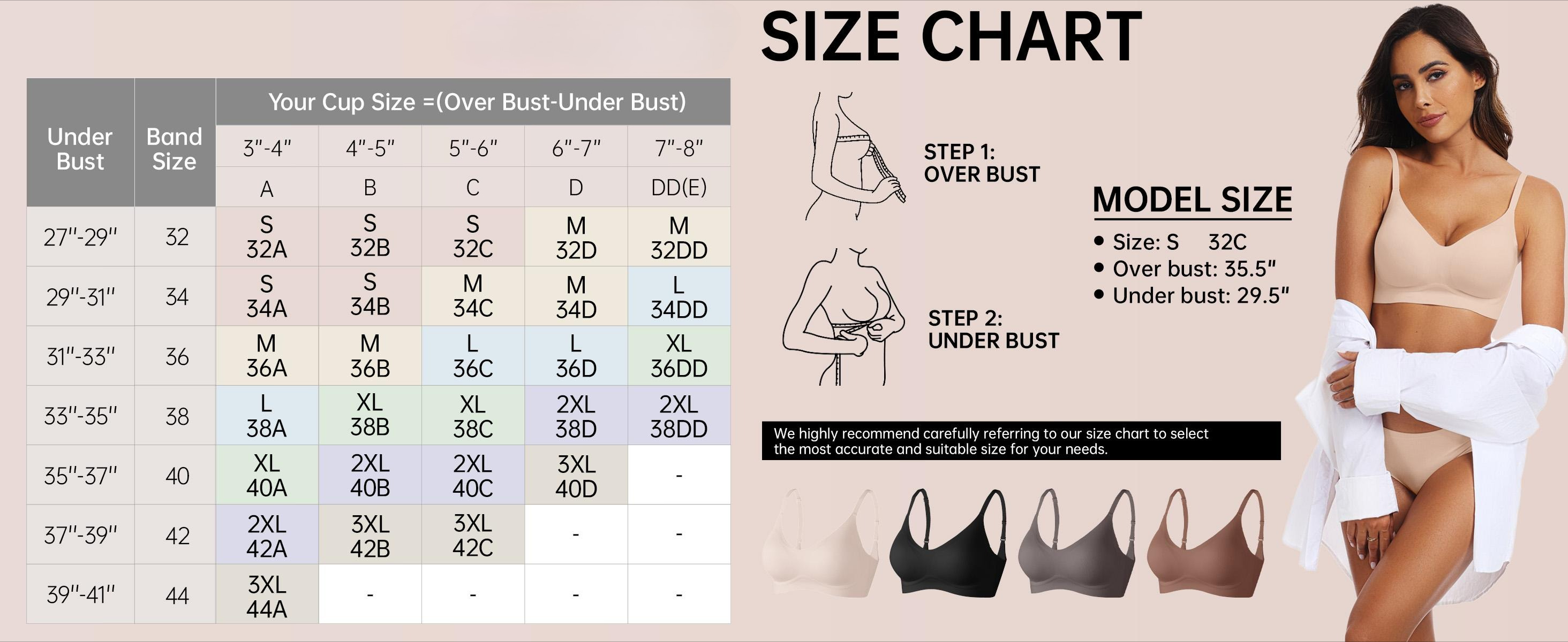 【Comfort Soft Bra】 This seamless bra is crafted from 66% Nylon+ 34% Spandex, smooth, buttery soft and silky feeling against the skin. The removable chest pads are made of breathable cotton material for a cool and comfortable experience. The flexible cup surface fabric effortlessly adapts to different chest shapes.【Jelly Strip Push Up Bras for Women】Our push up bra features a W-shaped liquid jelly strip that lifts and shapes your chest from the bottom and sides towards the center, creating a full shape, without the discomfort of a traditional underwire bra. The lightweight and removable padding in our wireless push up bras provides a cloud-like softness, ensuring maximum comfort. The 3D cup shape design offers 360° round support for your breasts.